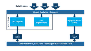 Data streams play an important role in collecting information from your website or app and delivering it to the data warehouse. The data warehouse is in charge of storing and processing the collected data. As a result, your Google Analytics 4 property uses this processed data, making it available to you through reports and analysis. You may delve into your data with these reports and analyses for useful insights into your users’ behaviors and interactions. This seamless method provides a thorough insight into your web presence and user interaction.