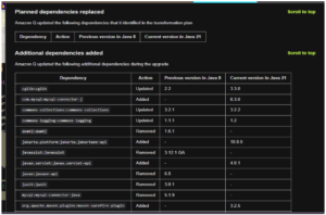 Even when upgrading within the same Java version, Amazon Q Developer can modernize dependencies to align with current ecosystem standards.